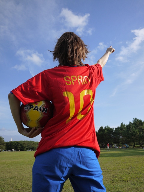 は、このサッカーボールもゲーセンでとったやつだ・・・このこすぷれは90%ゲーセンでできています・・・!